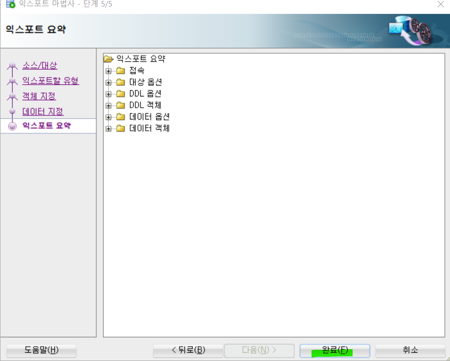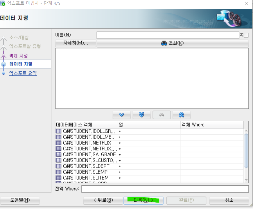 4. 데이터 지정에서 다음을 누른뒤 , 완료를 누르자