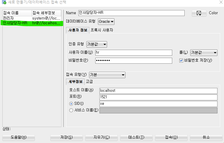 - CONNECT 롤 : 오라클 데이터 베이스에 접속할수 있는 시스템 권한