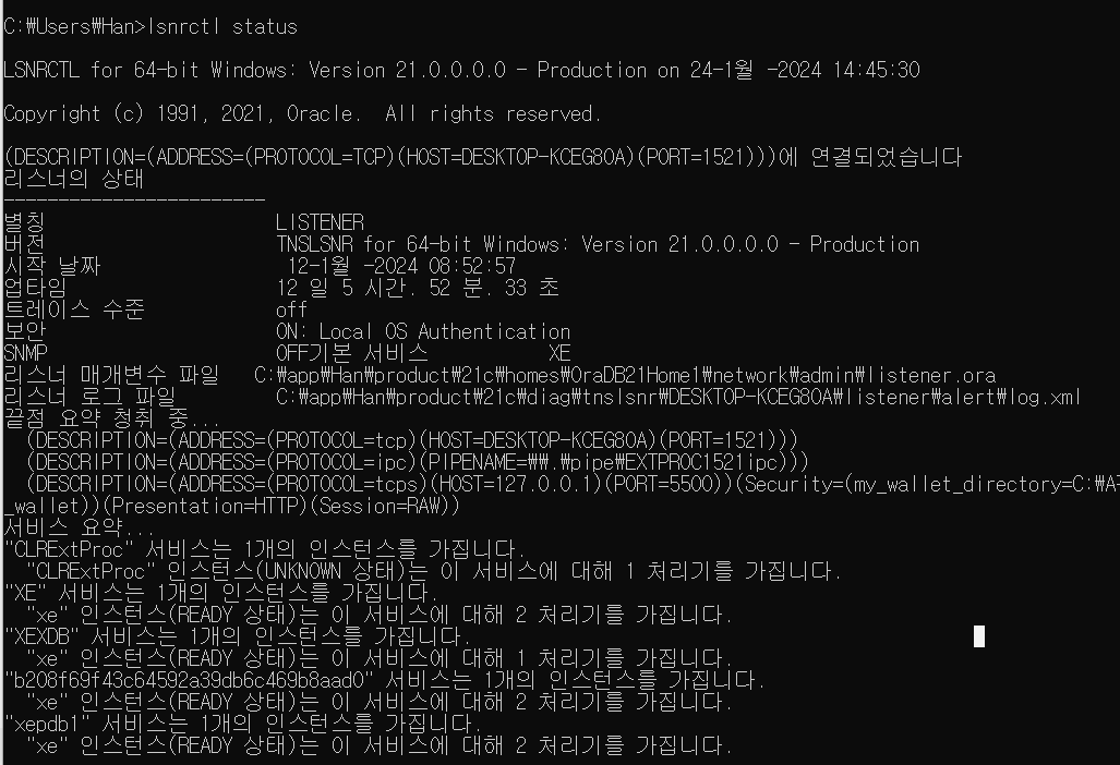 2. DB PORT 확인 (오라클 접속해 PORT 알아내거나 Service 명을 통해 알아낸다)
