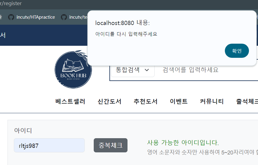 회원가입 - 아이디 중복체크 비동기 ajax 본문