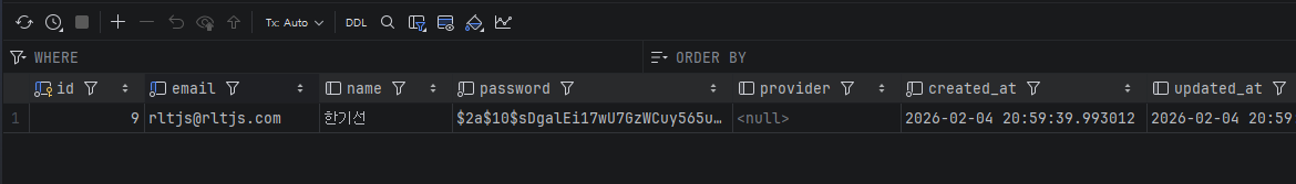 사이드 프로젝트를 진행하면서 입력한 비밀번호 값이 데이터베이스에 화끈하게 다 보이고있는 상태다